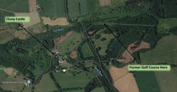 Cluny Golf Club. Instituted 1906. Originally a private 9-hole course in Sir Reginald Cathcart's grounds at Cluny, one mile from Monymusk station, it was opened to local golfers. “Sir Reginald Cathcart having kindly granted permission to use the private golf course in Cluny grounds, a club was recently formed for the parishes of Cluny, Midmar, and Monymusk, with Sir Reginald Cathcart as Honorary President, Mr Ranald R. Macdonald was appointed President ; Mr Nicholl, Vice President ; Mr Alexander, Captain ; Mr Chrighton, Secretary and Treasurer ; and a committee representing the three parishes. The members have been using the course for some time, but the formal opening took place on Saturday in beautiful weather. The course, which is opposite the North Lodge, is picturesquely situated with fine woods around it, and is sufficiently diversified to try the skill of the players. At three o’clock a large number of ladies and gentlemen had assembled, and, in the absence of the president, who had been unavoidably delayed in town, Rev P Taylor called on Mr Alexander, the captain, who has taken a great interest in the formation of the club, to make a few remarks. Mr Alexander expressed regret at Mr Macdonald’s absence, and went on to explain the steps which had been taken in the formation of the club. The golf fever had invaded every corner of the land, and though a few enthusiastic golfers in the district used to go occasionally to Aberdeen to enjoy a game, there was no opportunity for a large number to have that enjoyment within reasonable distance till now, when by Sir Reginald’s kindness that course was open to them, and the large number who had eagerly taken advantage of it showed how much the privilege was appreciated. Tea and strawberries were then served at tables under the trees by the following ladies – Mrs Macdonald, Mrs Taylor, Mrs Crighton, Mrs Allan, Mrs Duncan and Mrs Macleod, after which the company was photographed. All then went to witness the driving of the first ball by Mrs Macdonald, which she accomplished with a dexterous stroke, which sent the ball well up to the green, and earned hearty applause. A number of foursomes were then arranged, and in the fine evening, play went on with great zest for several rounds.”